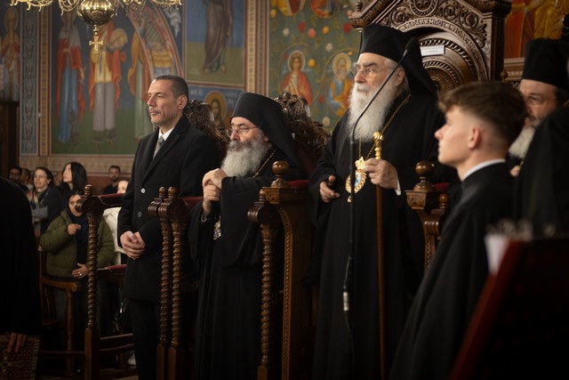 Κλήρος και λαός της πόλεως Λεμεσού και άλλων επαρχιών προσήλθαν για να εκφράσουν τις θερμότατες ευχές προς τον εορτάζοντα ποιμενάρχη μας, δεόμενοι όπως ο Τριαδικός Θεός τού χαρίζει υγεία, μακροημέρευση, πνευματική δύναμη και θεία φώτιση, ώστε να συνεχίζει απρόσκοπτα το πολυσήμαντο αρχιερατικό του έργο. Μεταξύ αυτών προσήλθε και ο Μακαριώτατος Αρχιεπίσκοπος Κύπρου κ.κ. Γεώργιος.