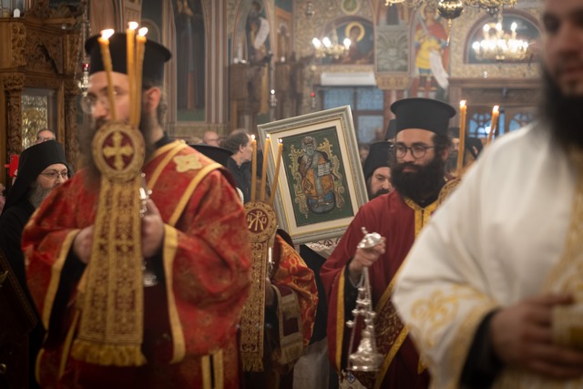 Την παραμονή της εορτής, το Σάββατο 17 Ιανουαρίου, τελέστηκε πανηγυρικός πολυαρχιερατικός εσπερινός στον Μητροπολιτικό Ναό Παναγίας Παντανάσσης Καθολικής προϊσταμένου του Πανιερωτάτου Μητροπολίτου Λεμεσού κ. Αθανασίου και συγχοροστατούντων των Σεβασμιωτάτων Μητροπολιτών Βόστρων κ. Τιμοθέου, Κίτρους, Κατερίνης και Πλαταμώνος κ. Γεωργίου και των Θεοφιλεστάτων Επισκόπων Αμαθούντος κ. Νικόλαος, Λήδρας κ. Επιφάνιος (ηγούμενος Ιεράς Μονής Παναγίας Μαχαιρά) και Μεσαορίας κ. Γρηγορίου. Τα αναλόγια κόσμησε επαξίως η χορωδία της Μητροπόλεώς μας «Ρωμανός ο Μελωδός» υπό τη διεύθυνση του Πρωτ. Νικόλαου Λυμπουρίδη και του κ. Αλέξανδρου Λατζιά.