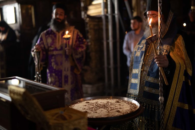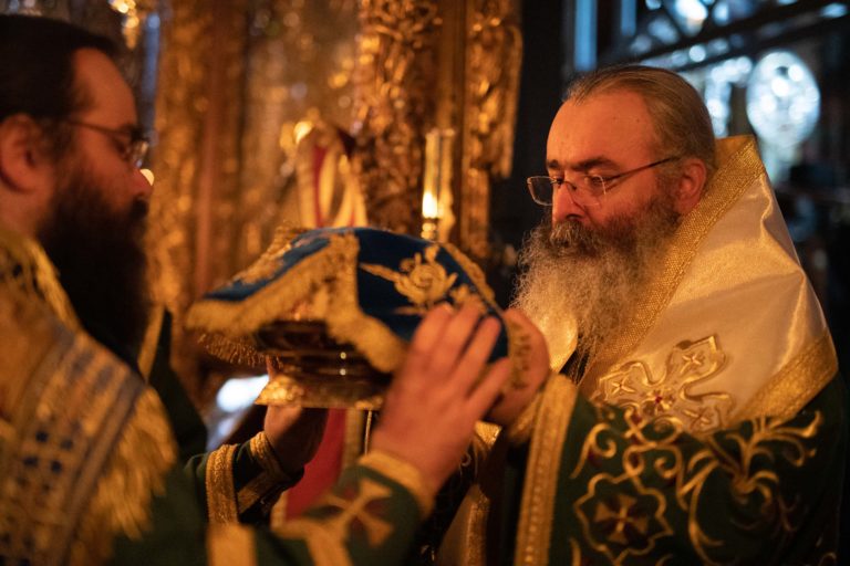 Το πρωί τελέσθηκε αρχιερατικό συλλείτουργο με προεξάρχοντα της Ευχαριστιακής Σύναξης τον Επίσκοπο Αμαθούντος Νικόλαο. Κατά τη διάρκεια της Θείας Λειτουργίας τελέσθηκε η κουρά εις μεγαλόσχημον του π. Ευγενίου, αδελφού της Μονής.
